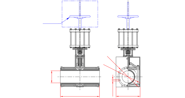 Пережимной клапан с пневматическим приводом управляется с помощью пневматического цилиндра. В открытом положении клапан полностью открыт без ограничения потока.