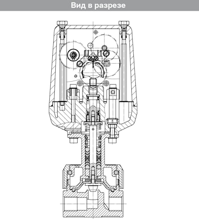 Моторизованный регулировочный мембранный клапан оснащён практически не требующим обслуживания электрическим сервоприводом с реверсивным синхронным двигателем.Срабатывание клапана осуществляется посредством не самотормозящей редукторной передачи и эксцентрика. Клапан серийно оснащён интегрированным оптическим индикатором положения.