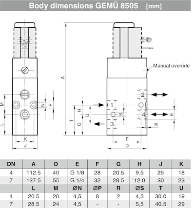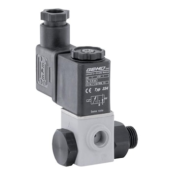 5/2-ходовой электромагнитный клапан с внешним управлением. Корпус состоит из алюминия, электромагнит с пластмассовой