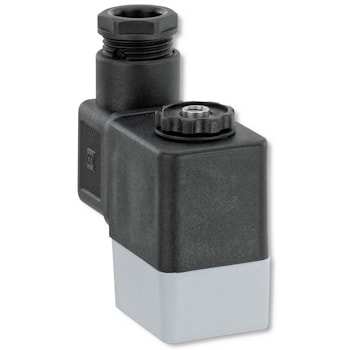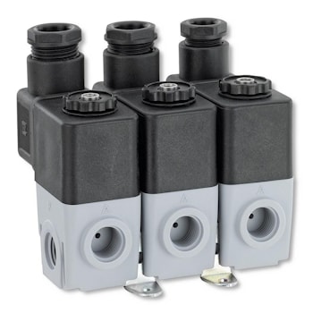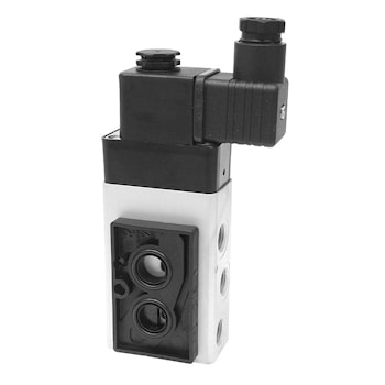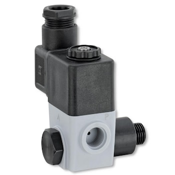 3/2-позиционный пластмассовый вспомогательный электромагнитный клапан прямого действия состоит из заключенной в эпоксидную смолу катушки и пластмассового корпуса клапана.Ручное управление интегрировано в стандартной модели.Подключение к электросети производится через штепсель, который в стандартной модели соединен с клапаном. Клапанная система предполагает различные варианты установки: для отдельной или прямой установки,для установки батареи или как клапанный коллектор