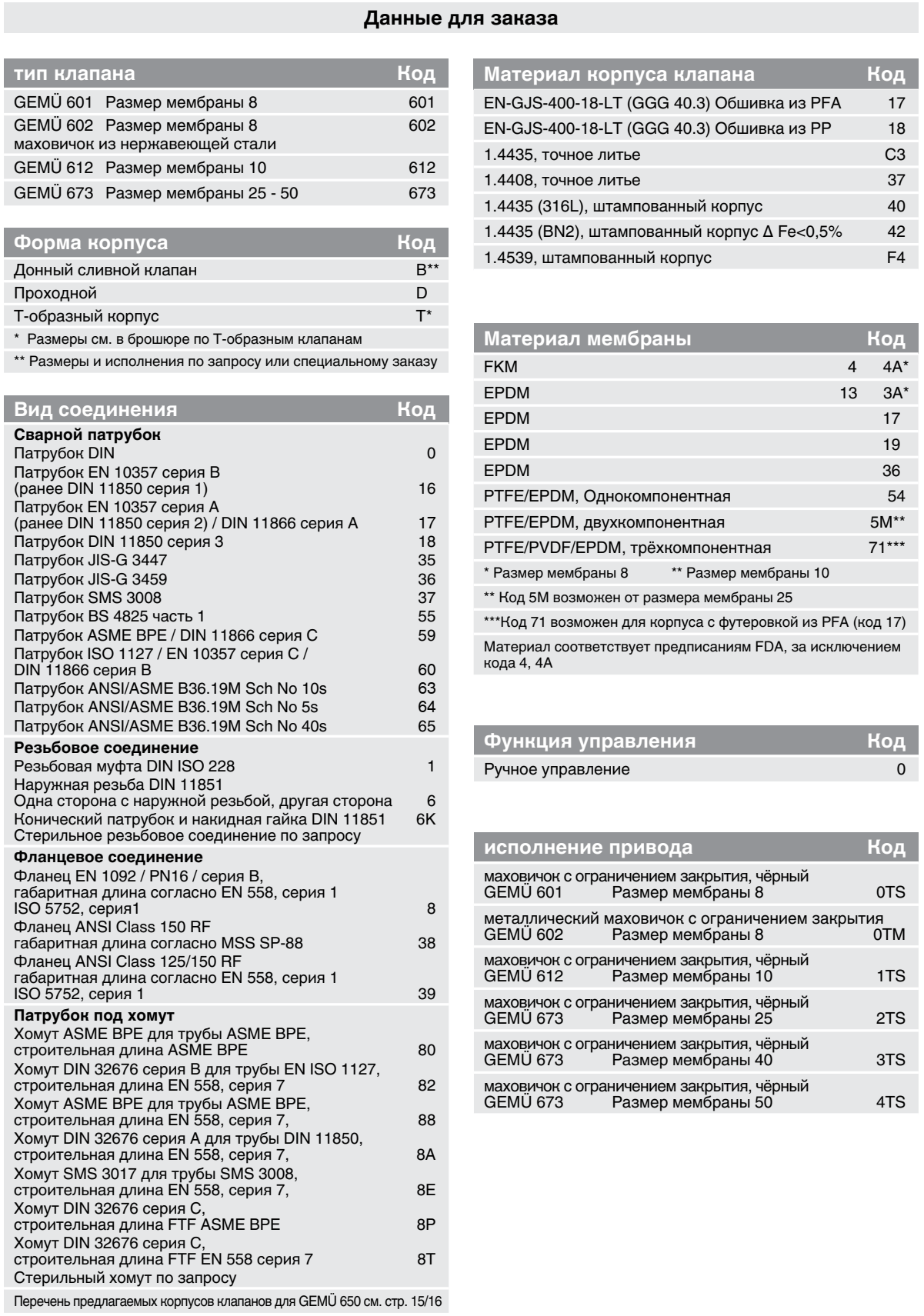 • Корпуса и мембраны клапанов выпускаются в исполнениях и из разных материалов