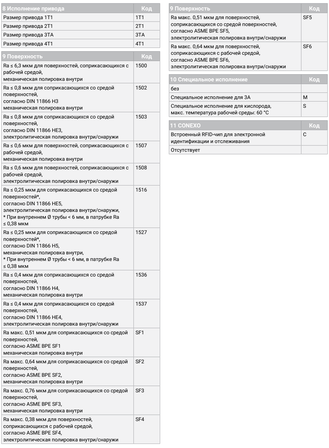 - Виды соединений: Кламп / Патрубок / Резьба / Фланец
