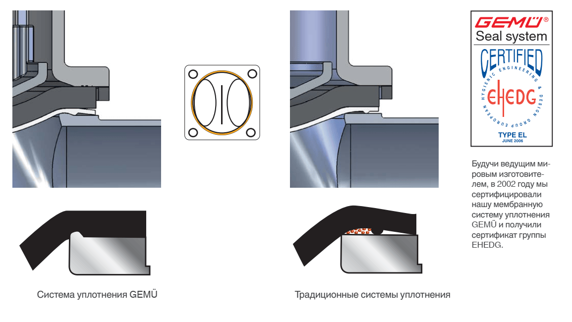 • оптимизированы для системы уплотнения GEMÜ, сертифицированной группой EHEDG (Европейская группа по гигиеническим разработкам и дизайну);
