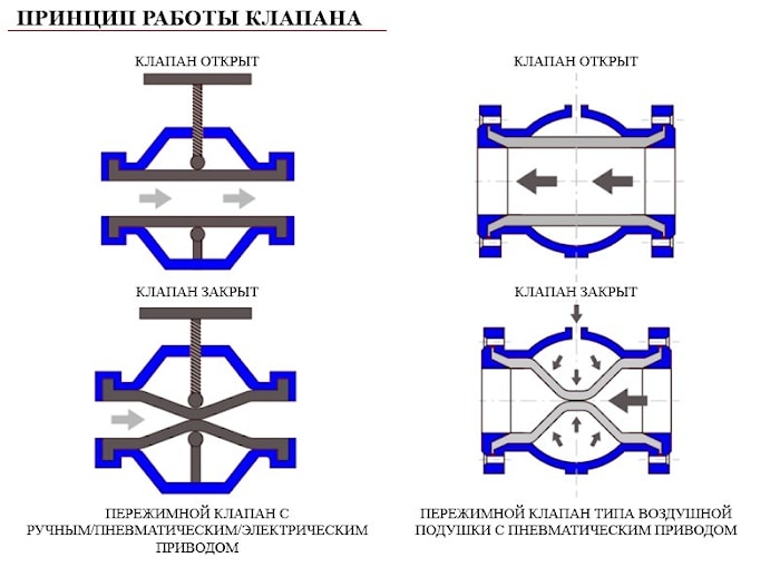 Пережимной клапан POV представлен тремя типами конструкций: закрытый тип, открытый тип и тип воздушной подушки. Эти три типа клапана могут применяться в различных ситуациях.